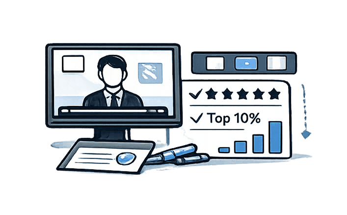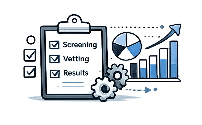 Proof-first vetting (scorecards, recordings, results)